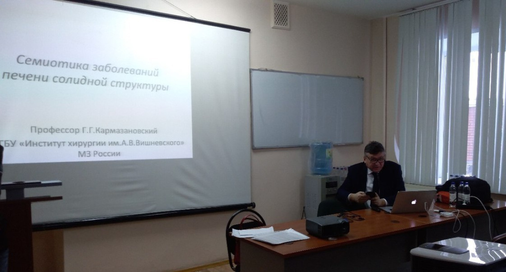 Ведущим семинара выступил Кармазановский Григорий Григорьевич - чл-корр РАН, доктор медицинских наук, профессор, заведующий отделом лучевых методов диагностики ФГБУ «Институт хирургии им. А.В.Вишневского» Минздрава России, профессор кафедры лучевой диагностики Института профессионального образования 1МГМУ им И.М. Сеченова Минздрава России, Заслуженный деятель науки Российской Федерации (г. Москва).